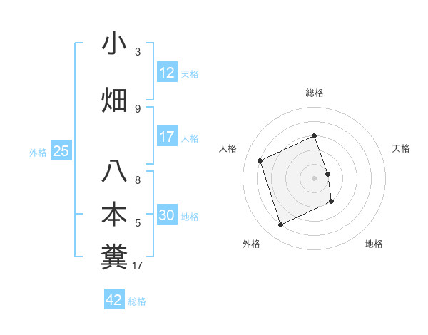小畑 八本糞さんを姓名の画数から五運を鑑定