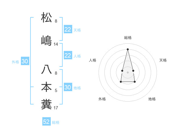 松嶋 八本糞さんを姓名の画数から五運を鑑定