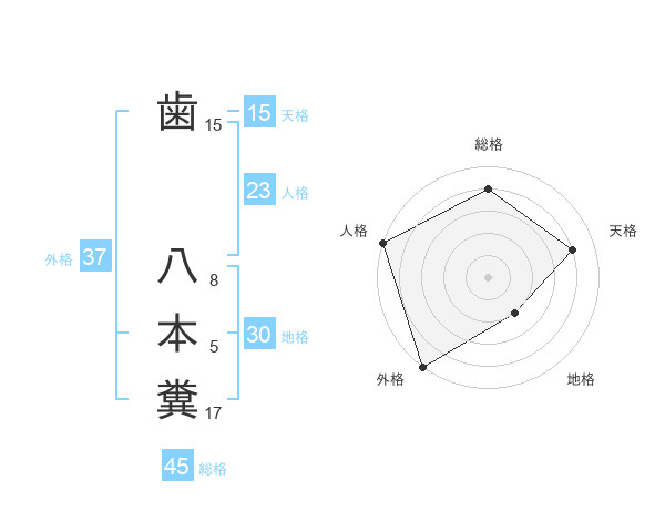 歯 八本糞さんの外格は37画の5点!