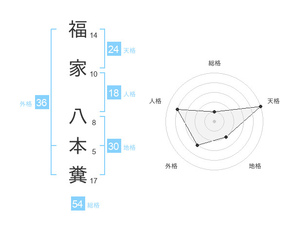 福家 八本糞さんの天格は24画の5点!