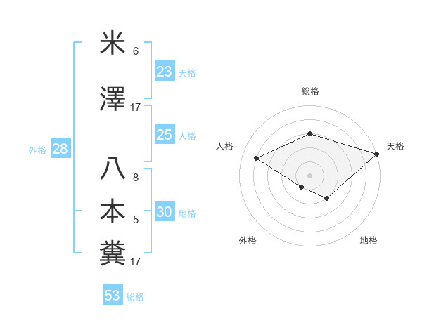 米澤 八本糞さんを姓名の画数から五運を鑑定