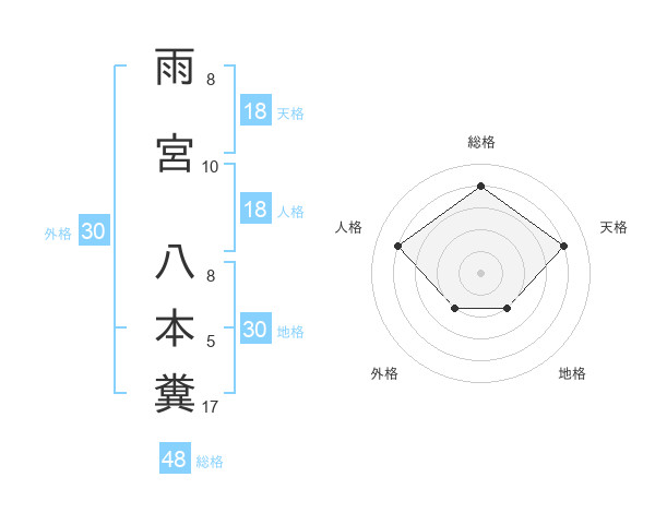 雨宮 八本糞さんを姓名の画数から五運を鑑定