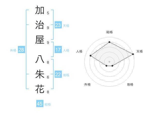 加治屋 八朱花さんを姓名の画数から五運を鑑定