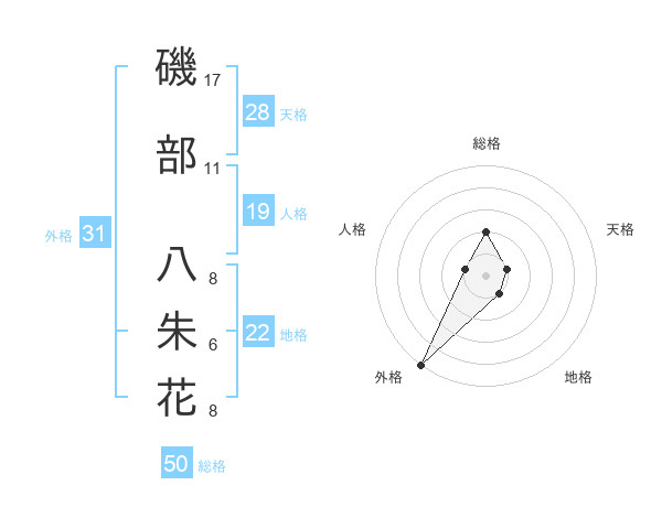 磯部 八朱花さんを姓名の画数から五運を鑑定
