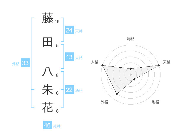 藤田 八朱花さんを姓名の画数から五運を鑑定