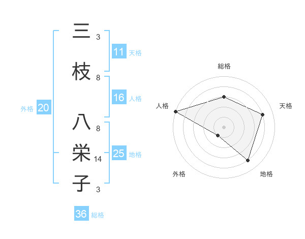 三枝 八栄子さんを姓名の画数から五運を鑑定