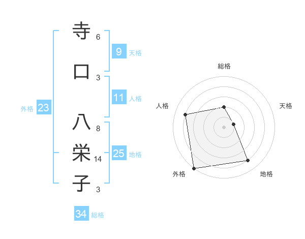 寺口 八栄子さんを姓名の画数から五運を鑑定