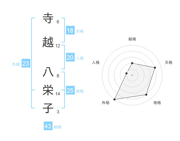 寺越 八栄子さんを姓名の画数から五運を鑑定