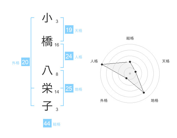 小橋 八栄子さんを姓名の画数から五運を鑑定