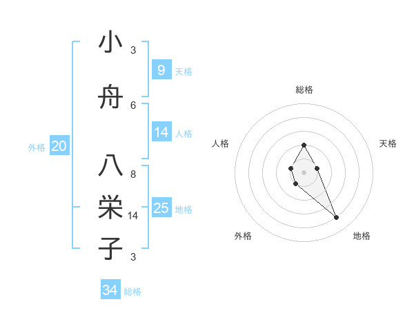 小舟 八栄子さんを姓名の画数から五運を鑑定
