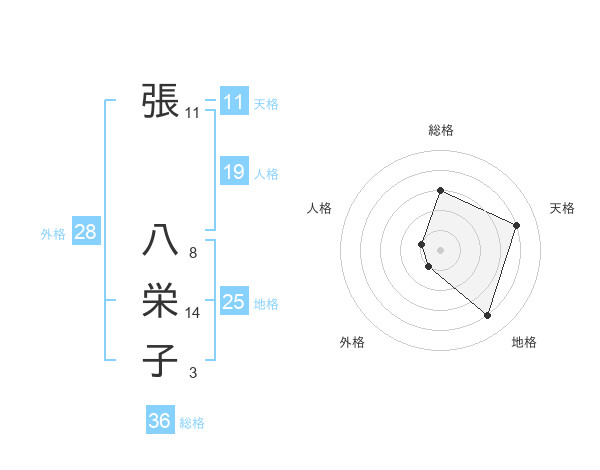 張 八栄子さんの天格は11画の4点!