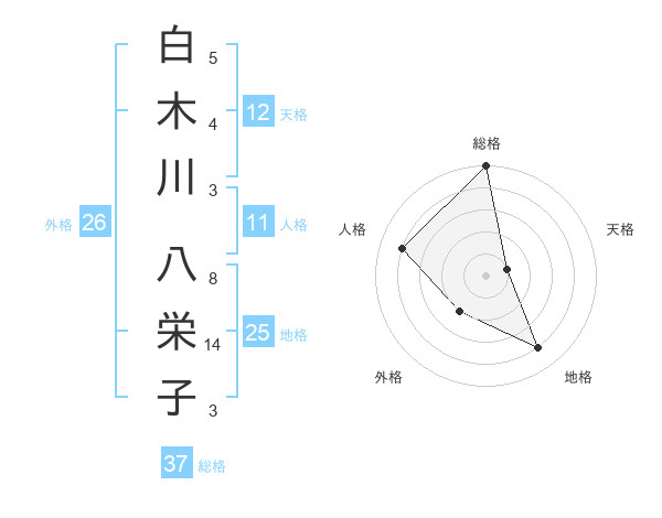白木川 八栄子さんを姓名の画数から五運を鑑定