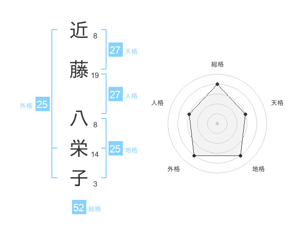 近藤 八栄子さんを姓名の画数から五運を鑑定
