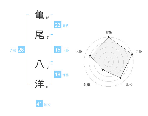 亀尾 八洋さんを姓名の画数から五運を鑑定