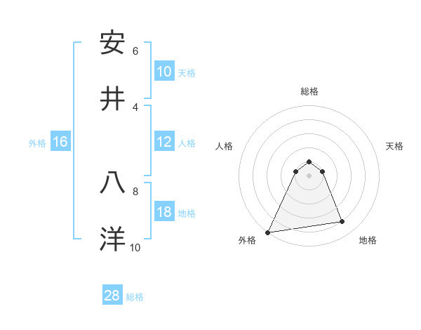 安井 八洋さんの外格は16画の5点!