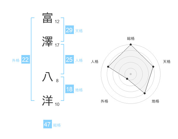 富澤 八洋さんの総格は47画の5点!