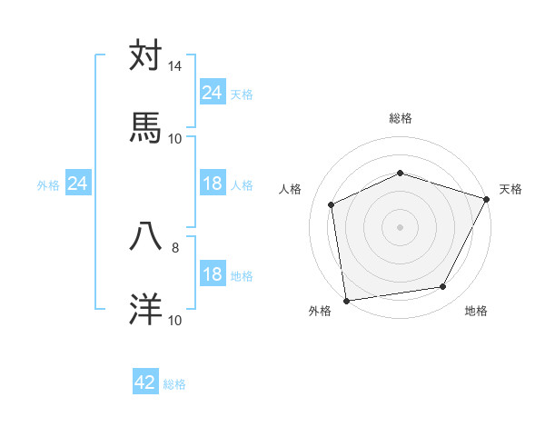 対馬 八洋さんを姓名の画数から五運を鑑定