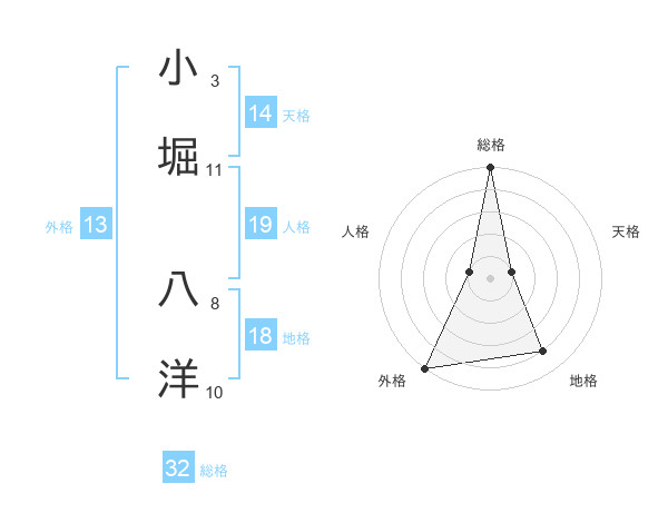 小堀 八洋さんを姓名の画数から五運を鑑定