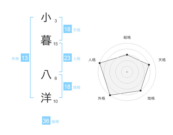 小暮 八洋さんの天格は18画の4点!