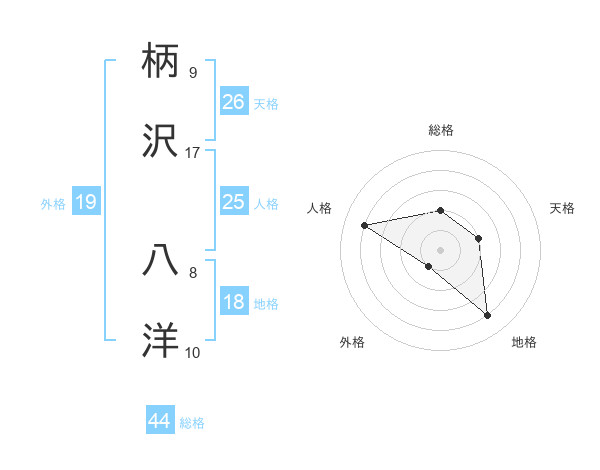 柄沢 八洋さんの総格は44画の2点!