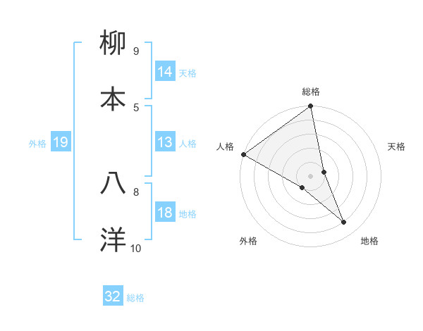 柳本 八洋さんの総格は32画の5点!