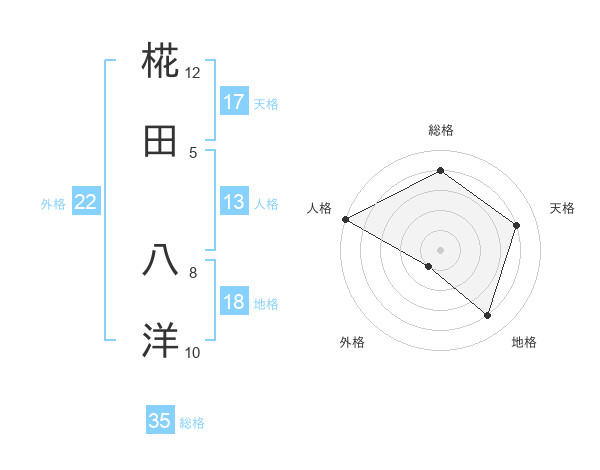 椛田 八洋さんの総格は35画の4点!