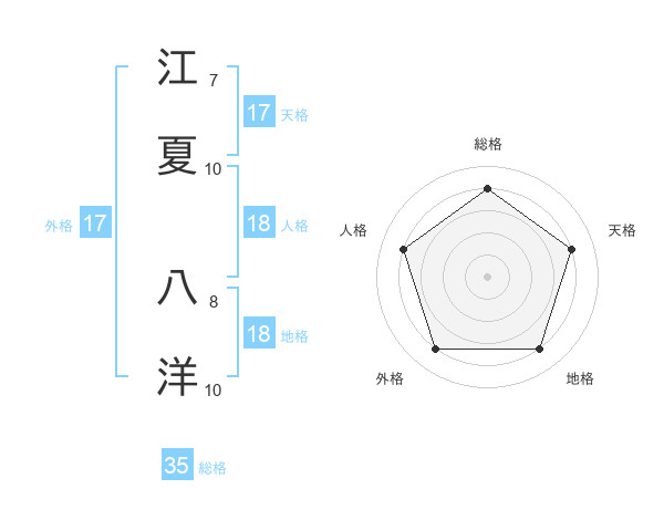 江夏 八洋さんを姓名の画数から五運を鑑定