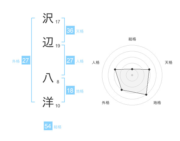 沢辺 八洋さんの外格は27画の3点!