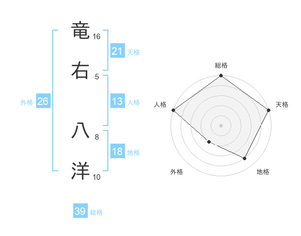 竜右 八洋さんを姓名の画数から五運を鑑定