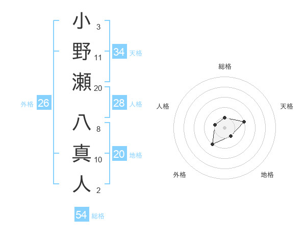 小野瀬 八真人さんを姓名の画数から五運を鑑定