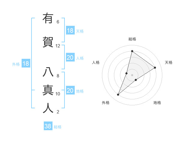 有賀 八真人さんの総格は38画の4点!