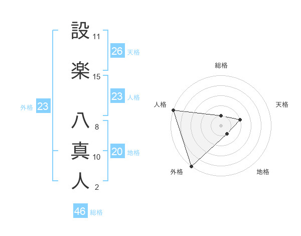 設楽 八真人さんを姓名の画数から五運を鑑定