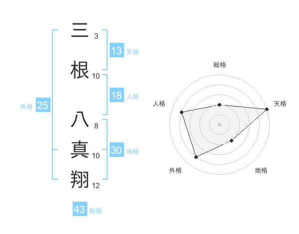 三根 八真翔さんを姓名の画数から五運を鑑定