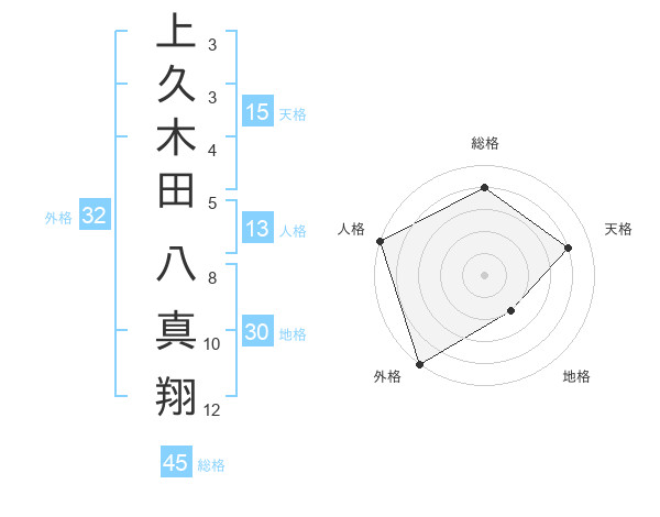 上久木田 八真翔さんを姓名の画数から五運を鑑定