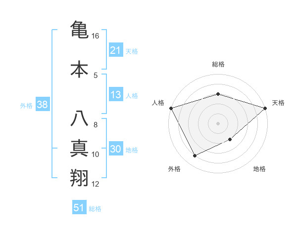 亀本 八真翔さんの天格は21画の5点!