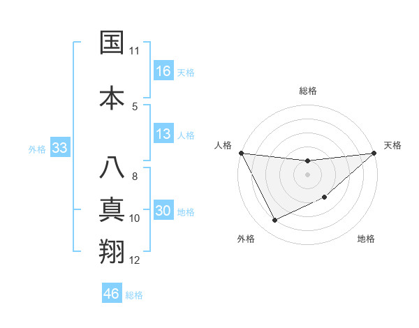 国本 八真翔さんを姓名の画数から五運を鑑定