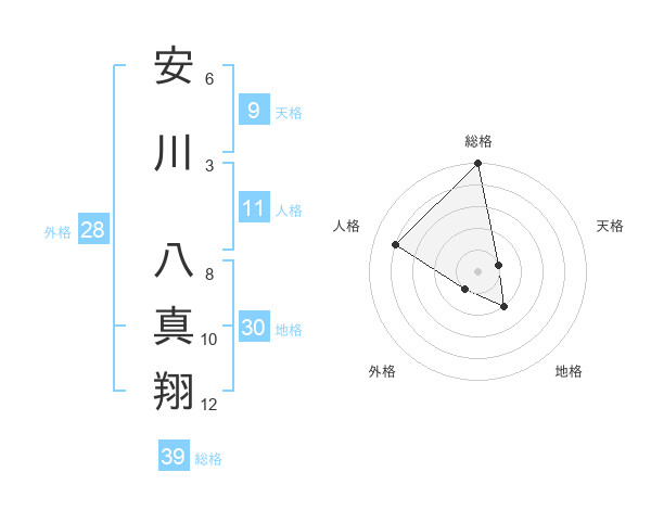 安川 八真翔さんの総格は39画の5点!