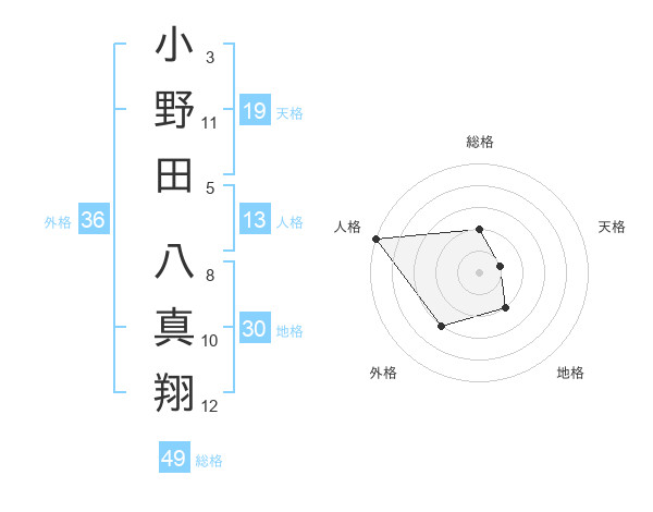 小野田 八真翔さんを姓名の画数から五運を鑑定