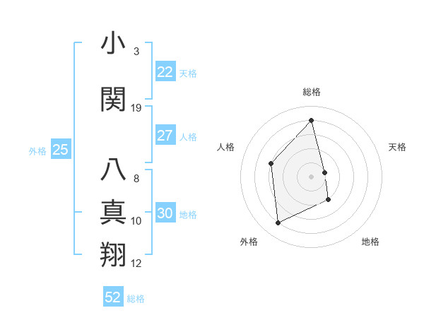 小関 八真翔さんを姓名の画数から五運を鑑定