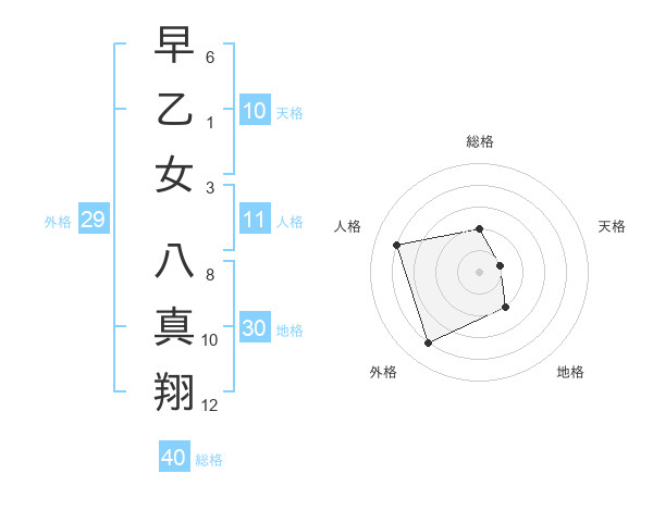 早乙女 八真翔さんの外格は29画の4点!