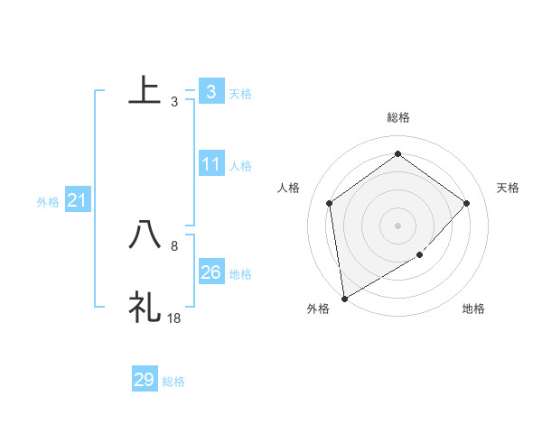上 八礼さんの総格は29画の4点!