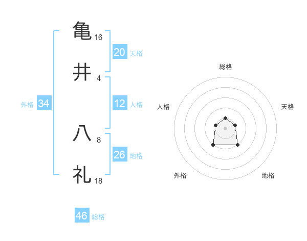 亀井 八礼さんを姓名の画数から五運を鑑定