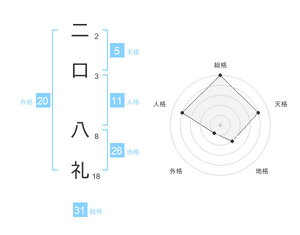 二口 八礼さんの総格は31画の5点!