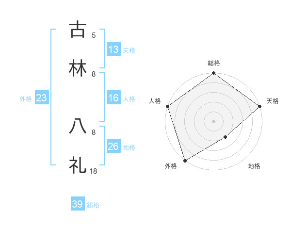 古林 八礼さんの総格は39画の5点!