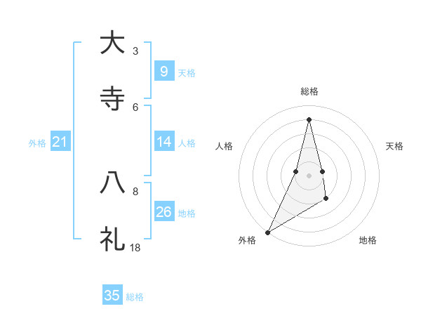 大寺 八礼さんを姓名の画数から五運を鑑定