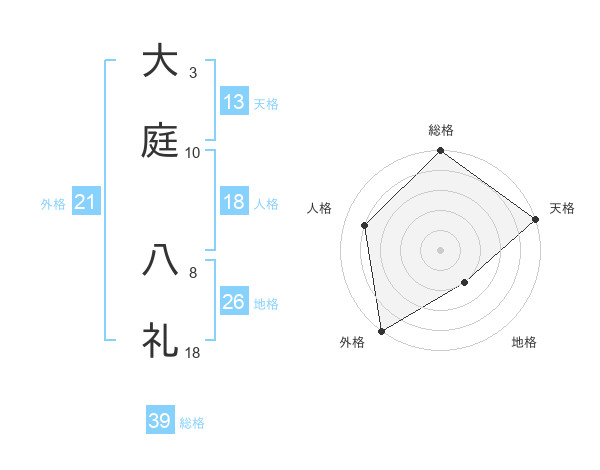 大庭 八礼さんの総格は39画の5点!