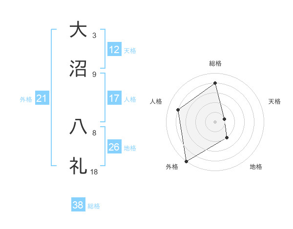 大沼 八礼さんを姓名の画数から五運を鑑定