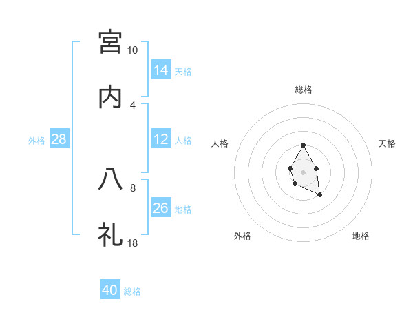 宮内 八礼さんを姓名の画数から五運を鑑定