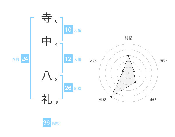 寺中 八礼さんを姓名の画数から五運を鑑定