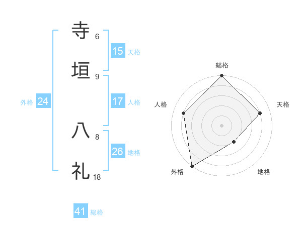 寺垣 八礼さんの総格は41画の5点!